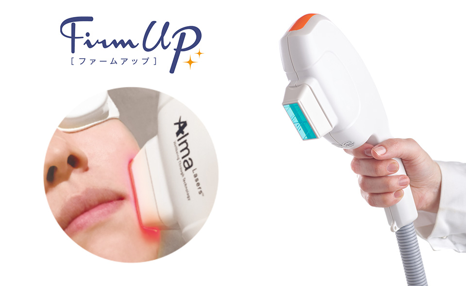 ファームアップは皮膚を切る方法をとらず、近赤外線を照射しコラーゲンを生成することでリフトアップさせ、肌にハリを生みます。
